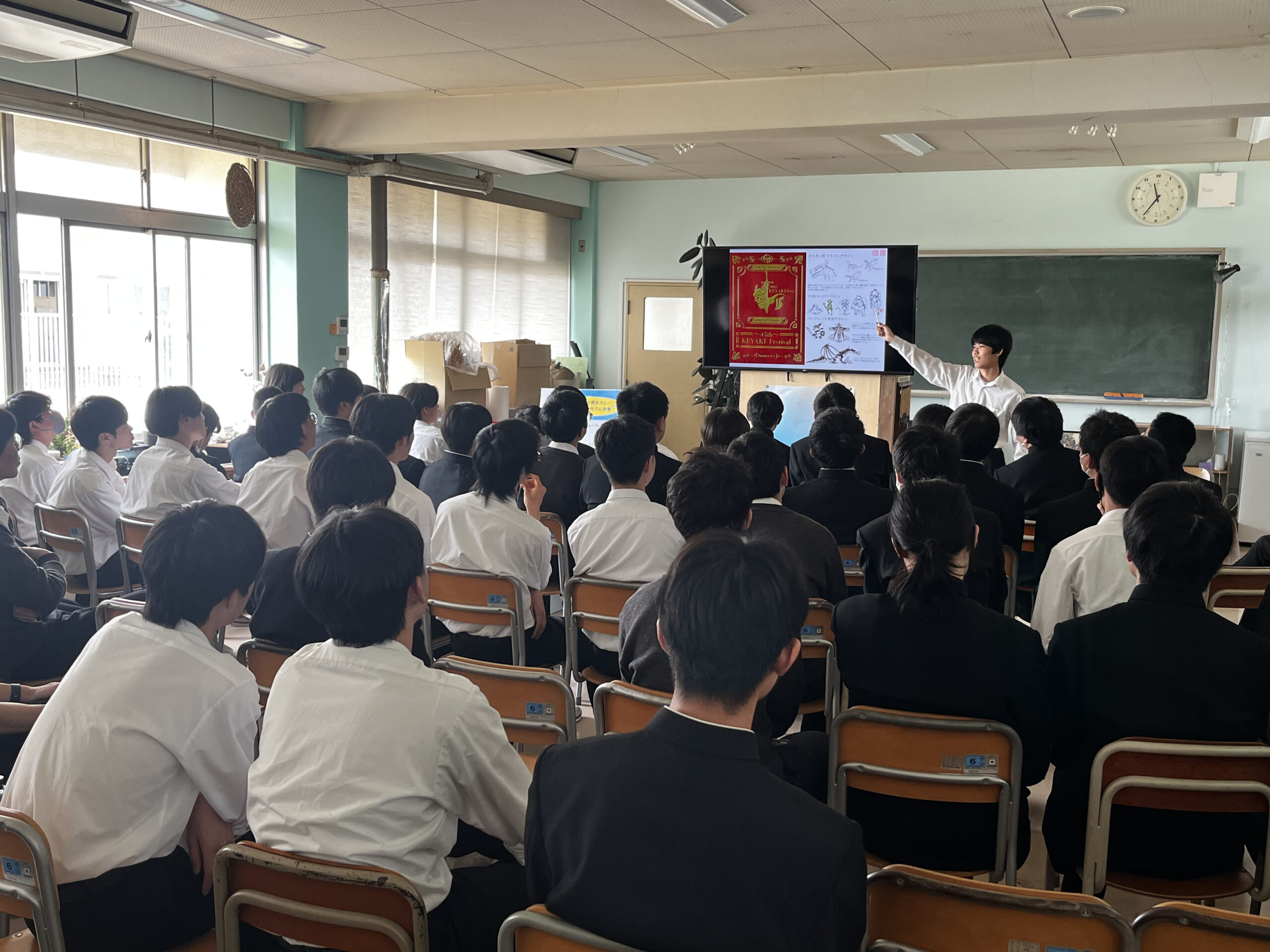 3限目には高校3年生によるプロジェクト紹介が行われました。フロンティアコースでは学校が計画したものをプログラム、生徒の好奇心から出発したものをプロジェクトと呼んでいます。