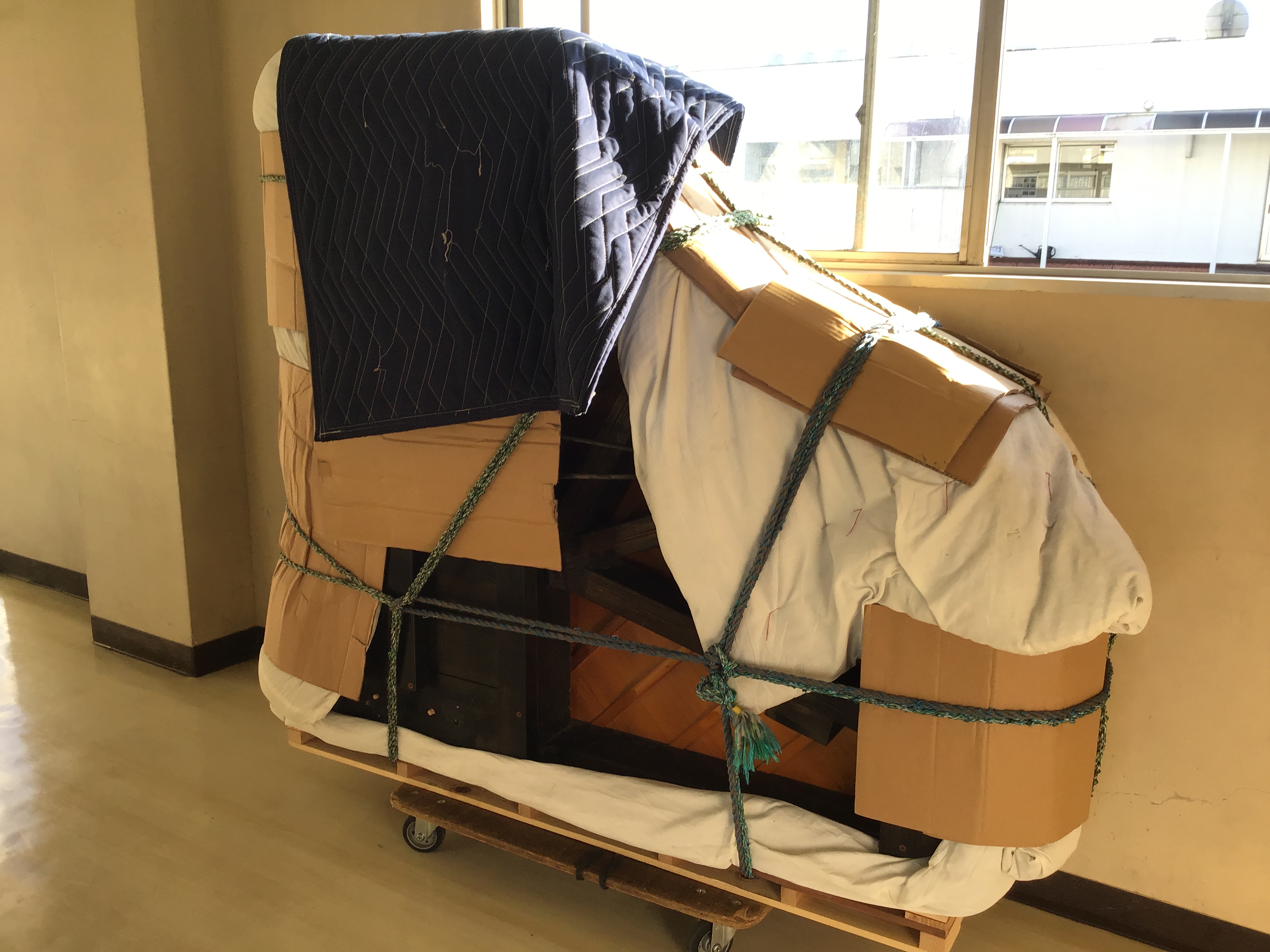 音楽室に新しいピアノがやってきました。音楽の授業で使ってみたいところですが、残念ながらまだ歌える状況ではありません。みんなで合唱できる日が早く訪れるとよいですね。今まで使っていたピアノは、リペアされた後、またどこかで演奏されるそうです。41年間ありがとう。