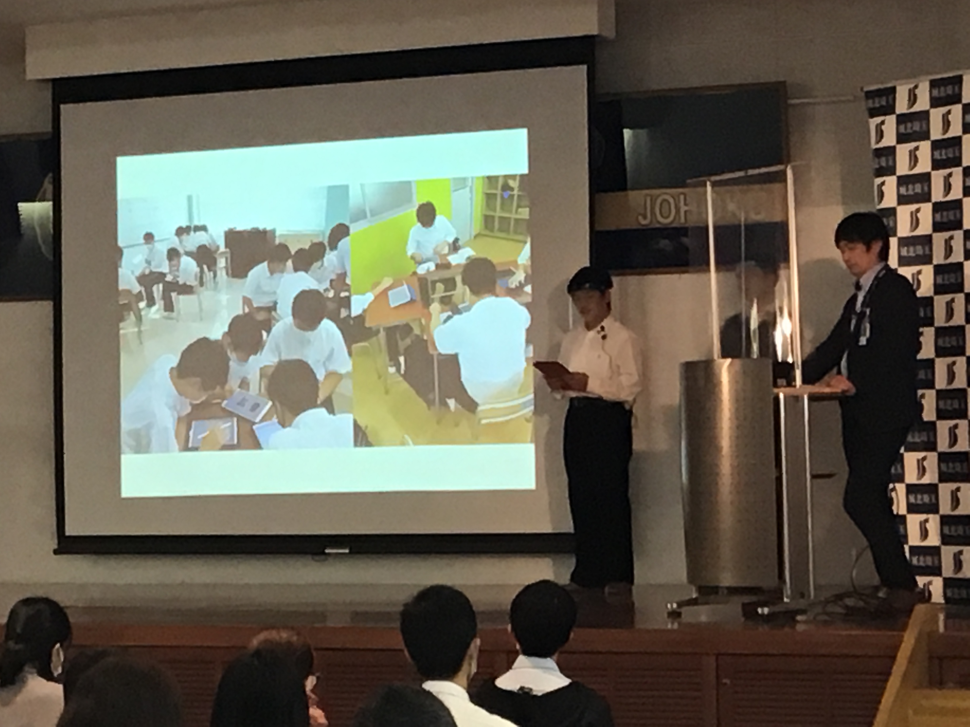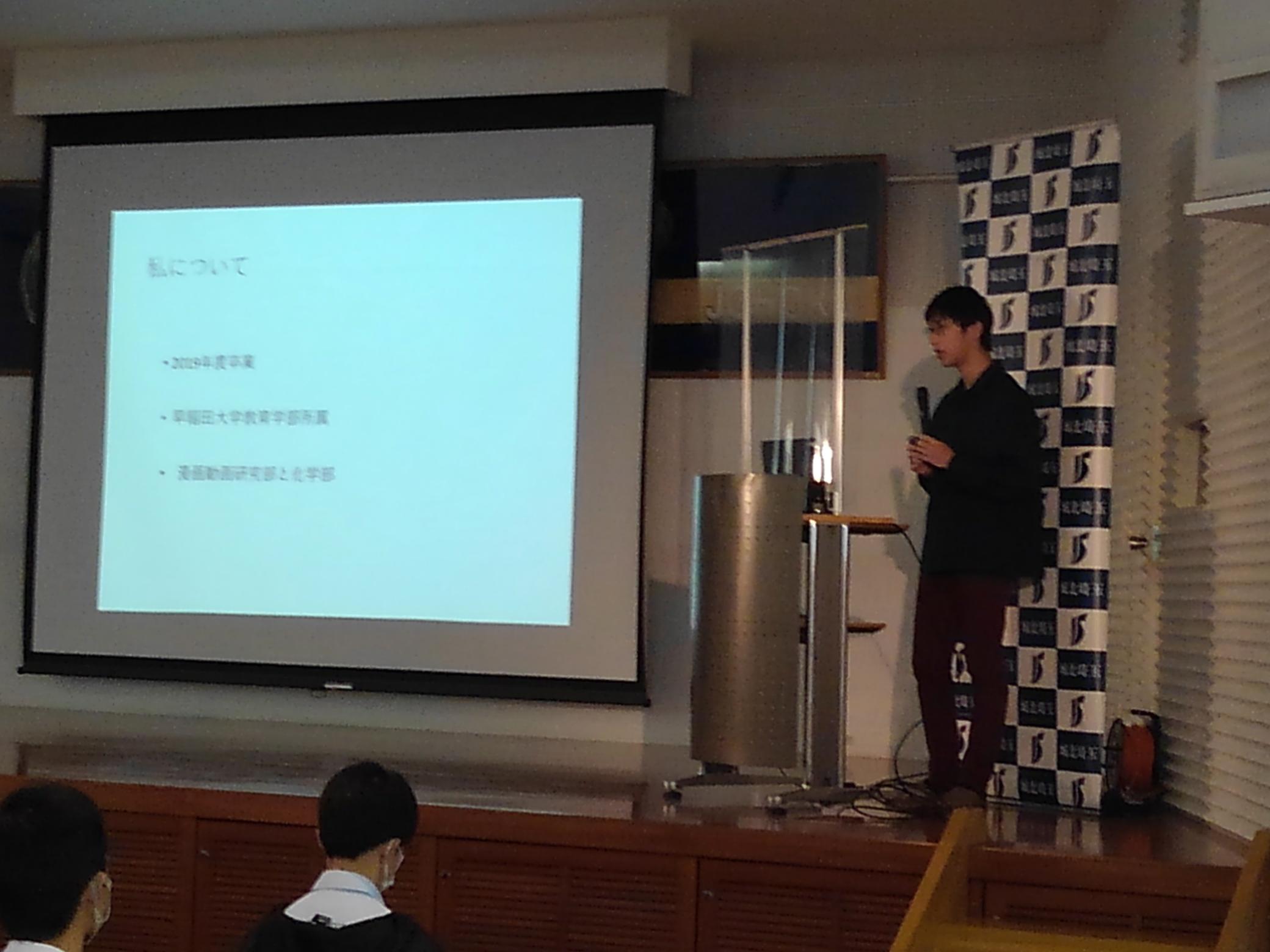 本校OBの早稲田大学1年生古閑耀太郎君にもお話してもらい多くの拍手をいただきました。