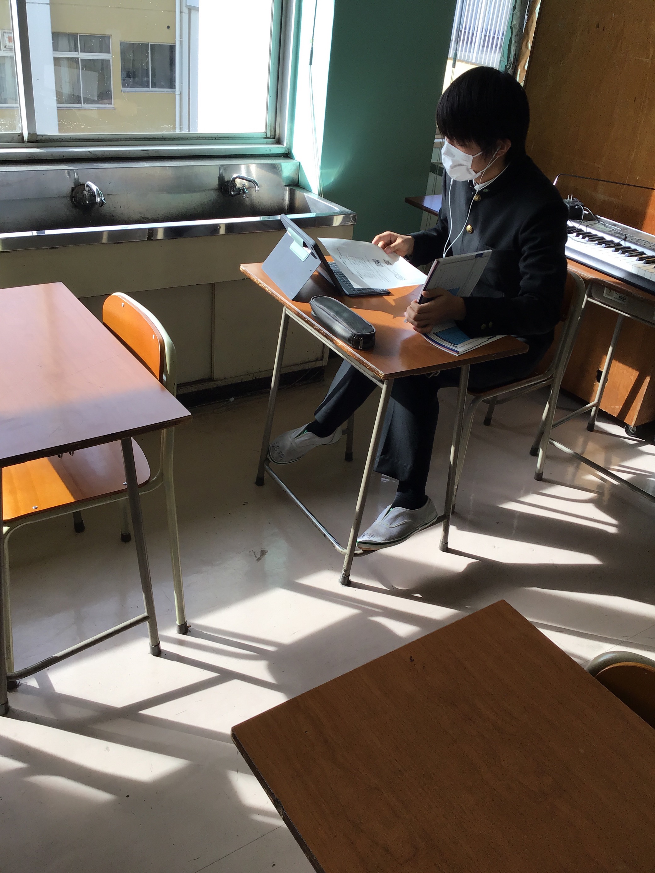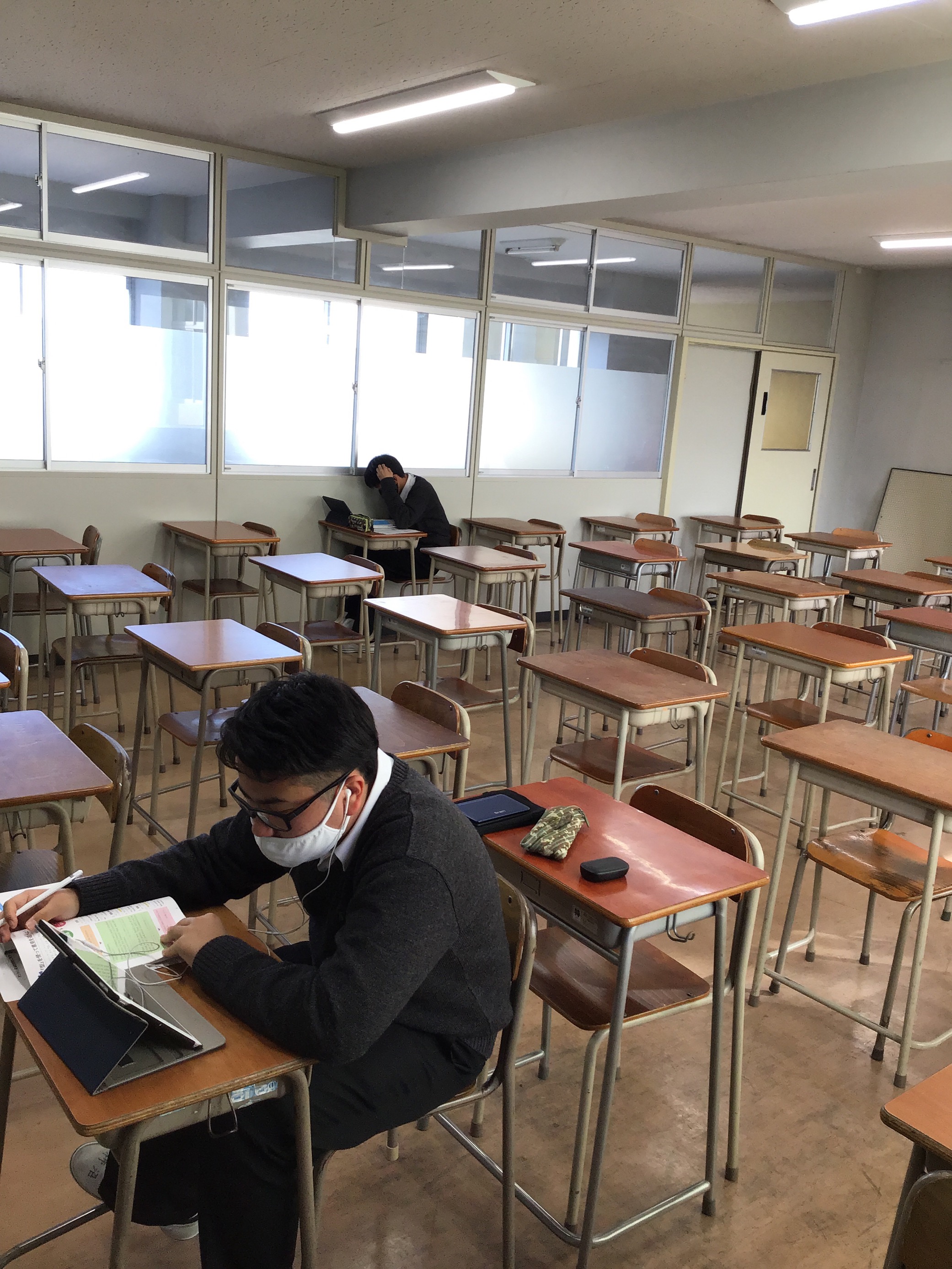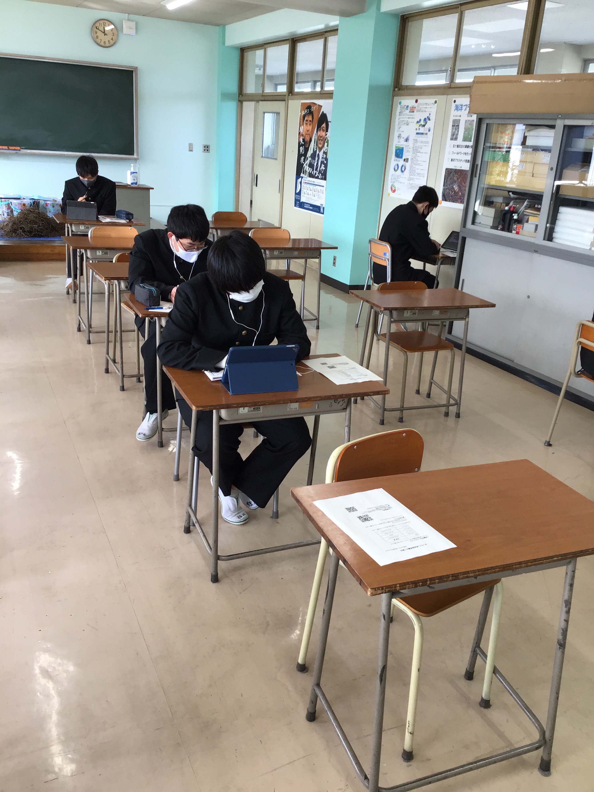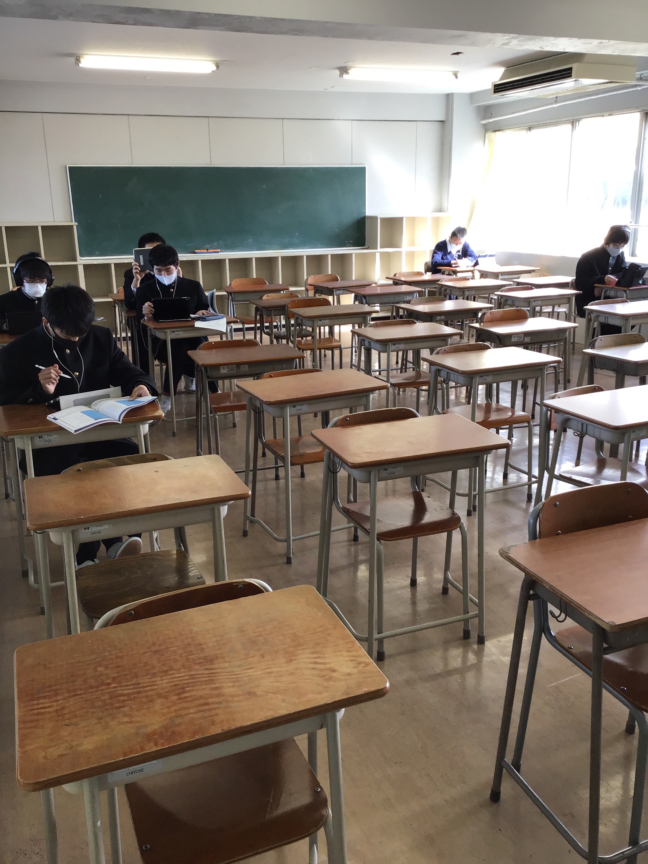 2学期終業式を迎えた今日、オンライン英会話が始まりました。各自のタブレットを使い、ネイティブの先生とマンツーマンで英語学習に励みました。