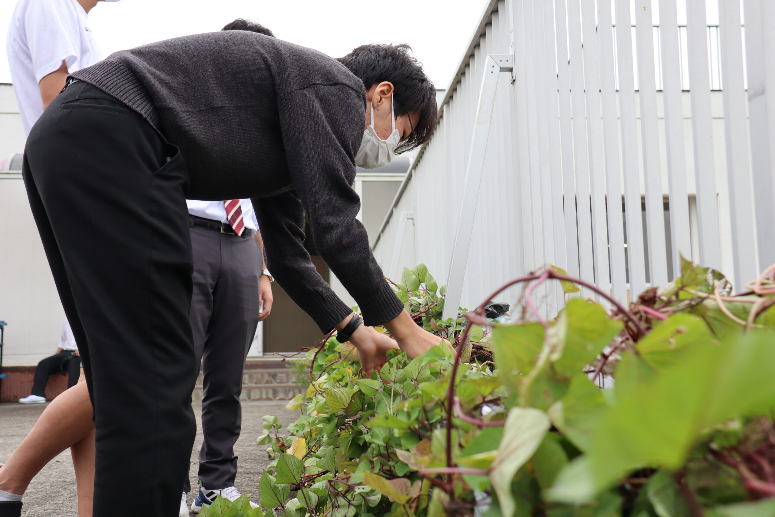 土に植え付けた部分の芋だけを肥大させるため“つる返し”と呼ばれる作業を行いました。