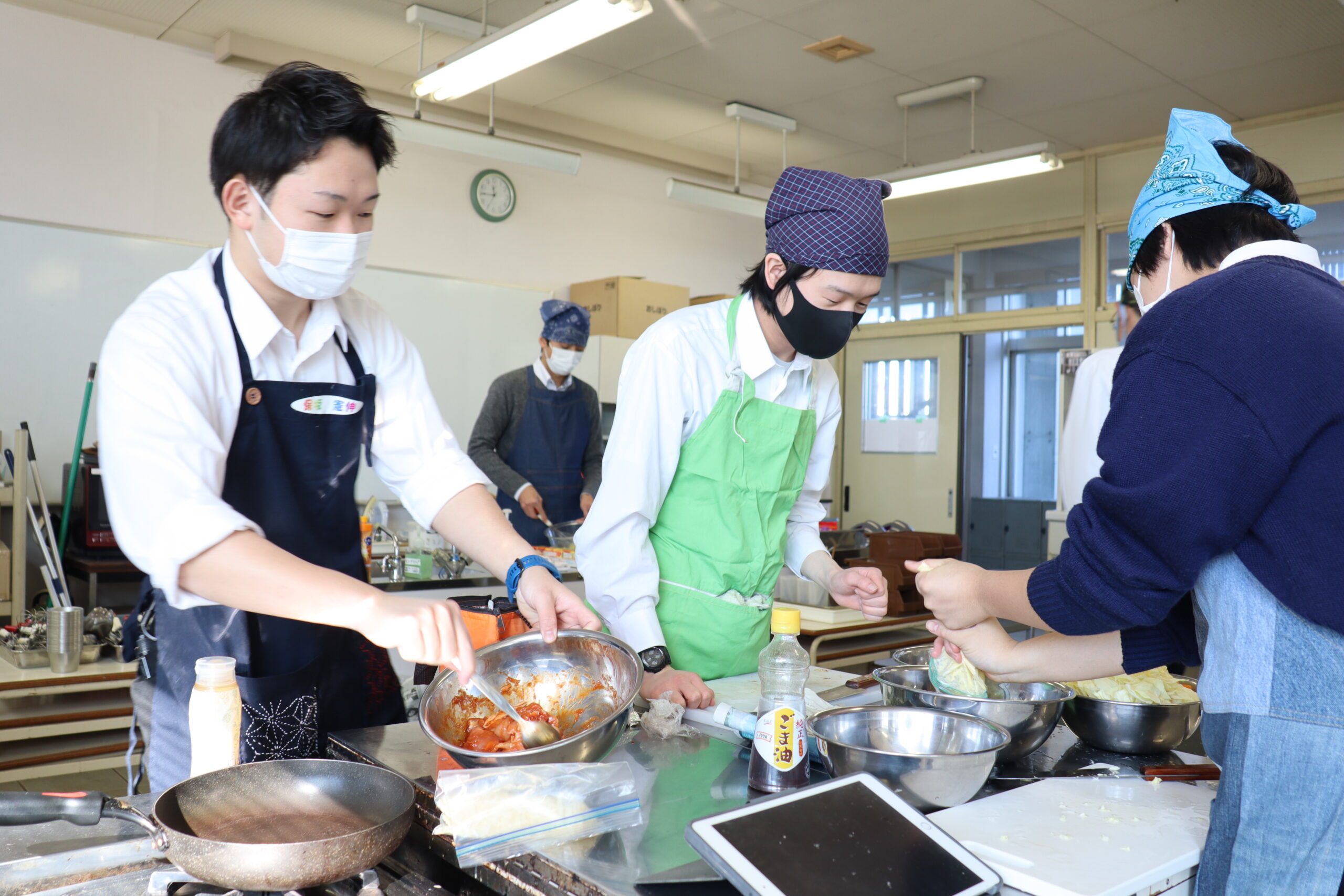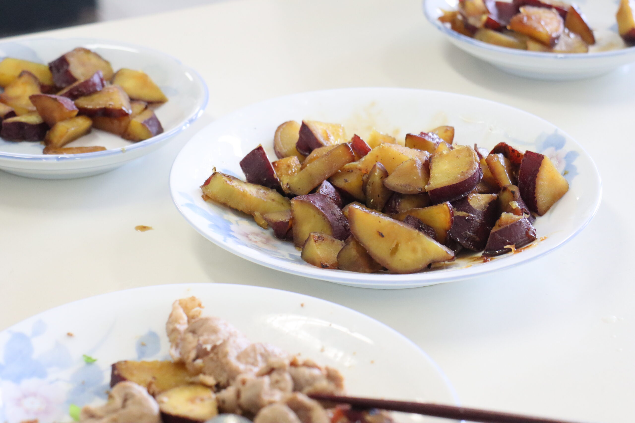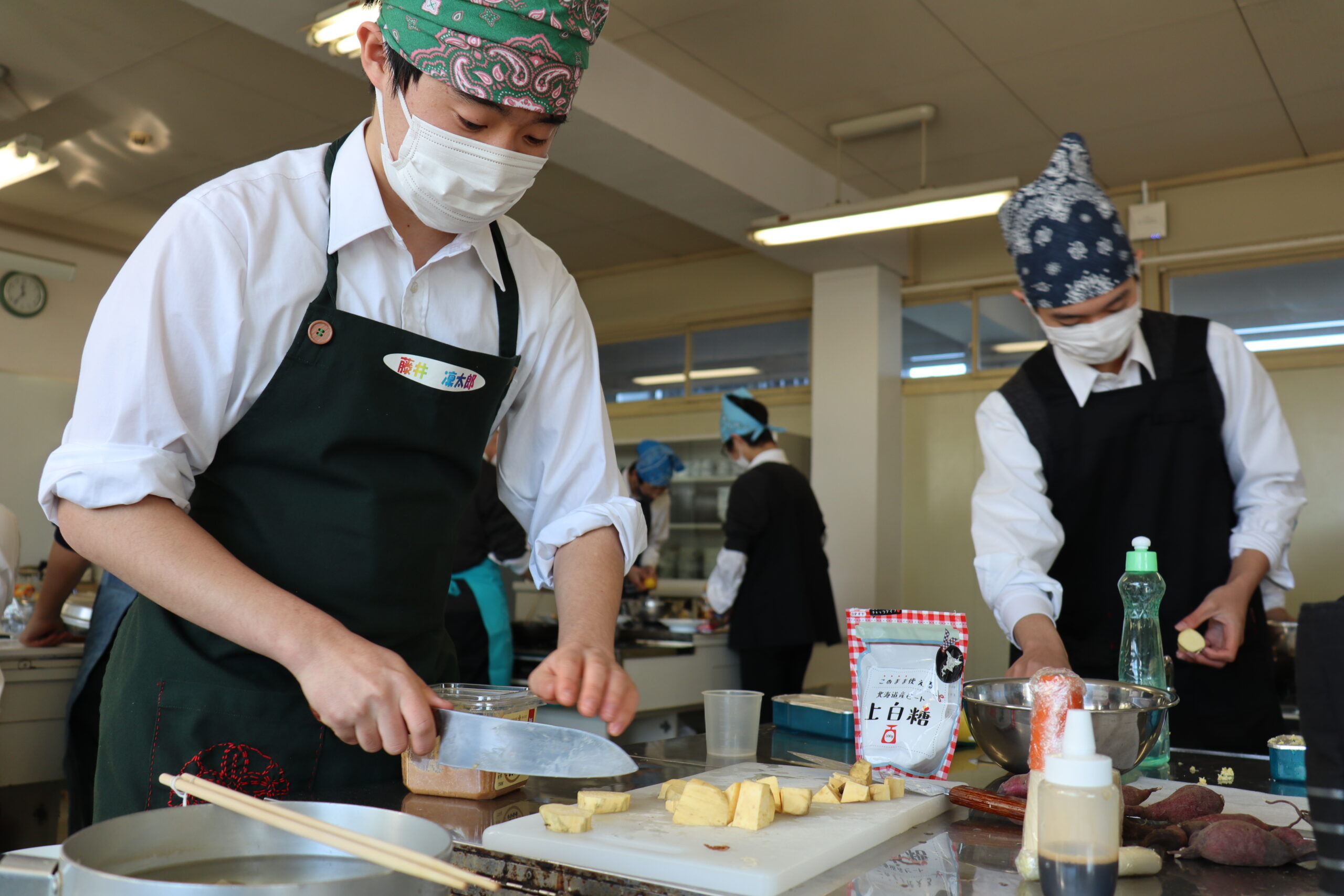 班ごとに事前に何を作るのかを決め、協力し合いながら調理を進めます。丹精込めて育てたさつまいもは甘くておいしい!