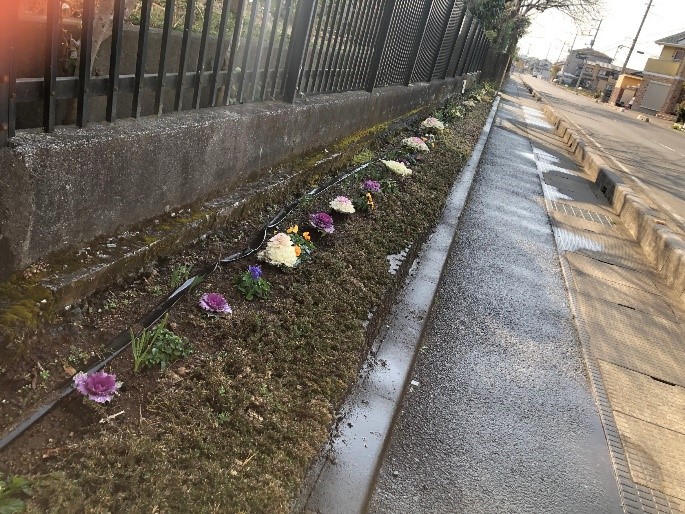 卒業式、入学式に向けて、学校周辺に季節の花々で彩りを添えました。花の持つ鮮やかさとたくましさに背を押され、生徒の皆さんが今後活躍されることを祈念しています。